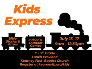 Finally, during the school year we have a Kearney Kids GO! Program on Wednesday evenings from 6:30-8:00pm. This is a mid-week opportunity for ages 4-5th grade to further encourage kids to learn who Jesus is and how great His love is for them. To register for this free program, just click here. This program begins the first Wednesday after Labor Day.